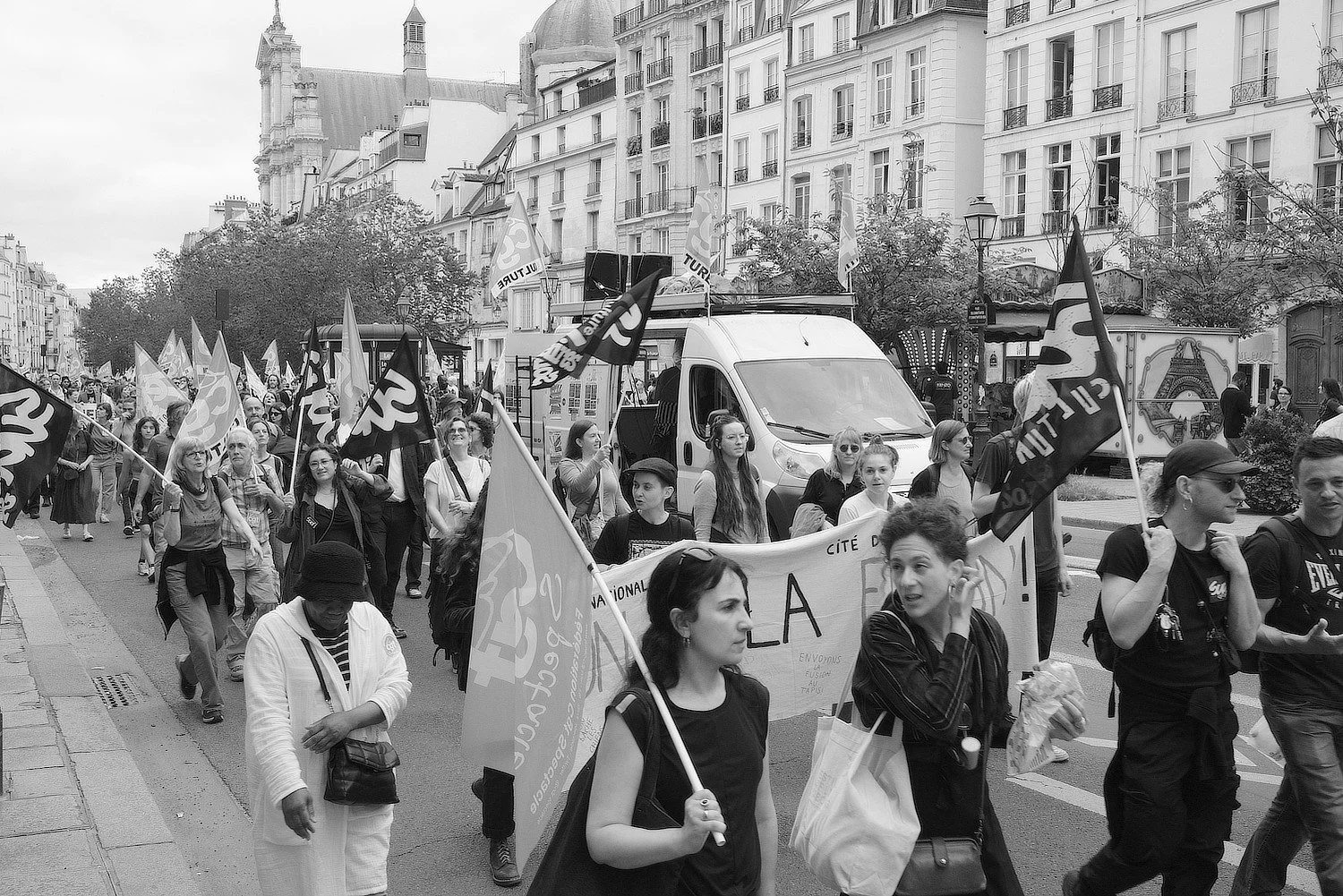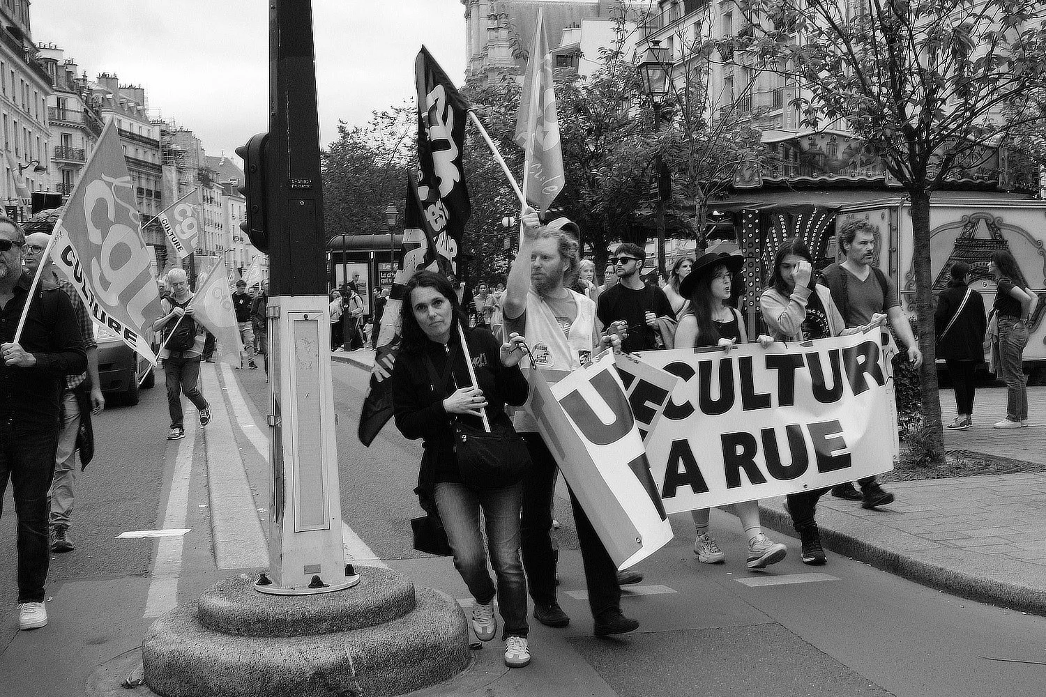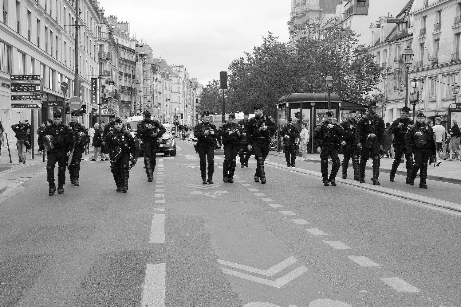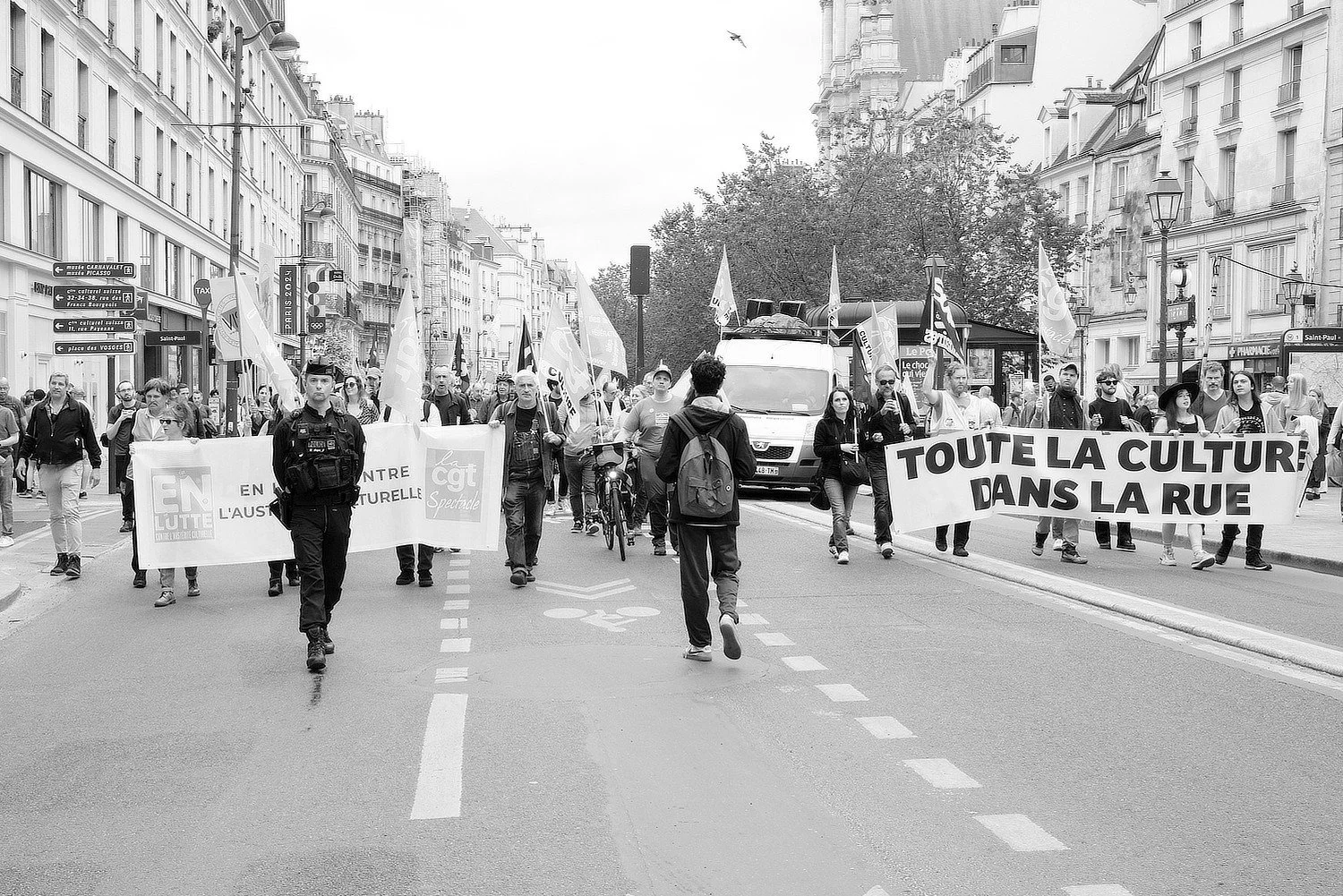 Here is a selection of photos that I took during my stay. One day, on my way to the Picasso Museum I decided on a later brunch in a cafe and was a witness to a demonstation by public workers - escorted by the gendamerie. Not quite on the scale of May 1968 or the recent efforts by the Gilets Jaunes, nevertheless it was a delightful chance experience.
