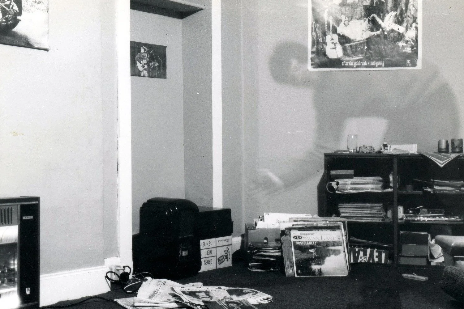 Triggered in 1971 by a birthday present - a Zenith B SLR camera. The Russian-made camera had one design fault, the catch to open the back was too easily triggered, leading to light getting in and images spoiled. The image below, shot with the Zenith, is a time-lapse-attempt selfie taken in 1971 in my student flat in Union Street in Edinburgh. Of its time, the room includes posters of Easy Rider, Bob Dylan and Neil Young; a two-bar electric fire, and a Ferranti 145 radio (ex my parents) driving the Garrard SP25 record deck.